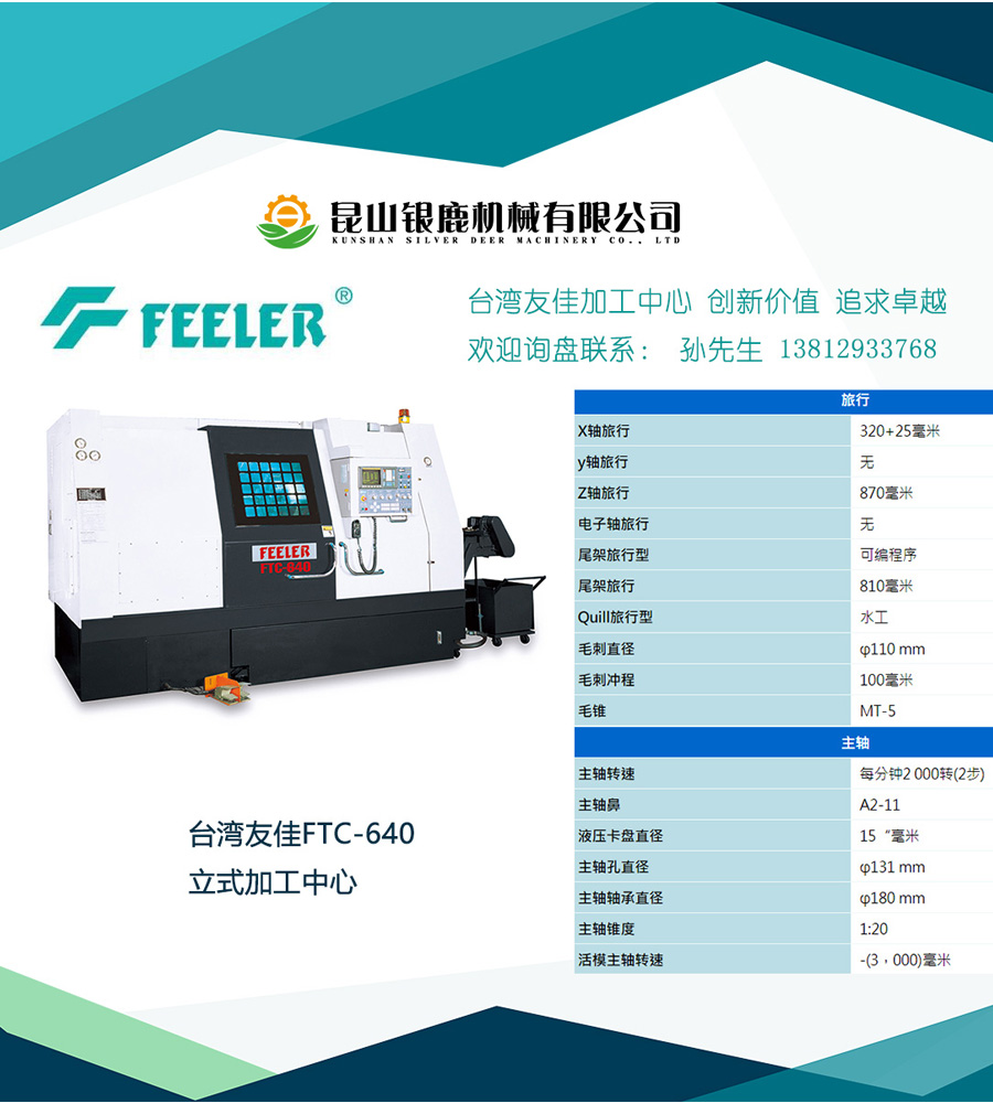 臺灣友嘉FTC-640車床,接納全體斜背車床、剛性好;A2-11主軸鼻端、主軸配2段式變速齒輪箱傳動、主軸轉速2000rpm、主軸功率22/26KW;15寸卡盤、棒材通孔直徑117.5mm;配可程式尾座;最大切削直徑640mm,出格合適大型整機加工,比方鋁合金輪轂等。